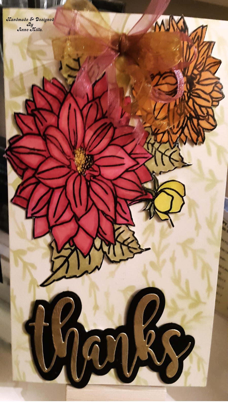 Leaf and sentiment die from Stamps by Me, leaf coloured with FC Pitt Pastels Pencils and covered with gloss Modge Podge